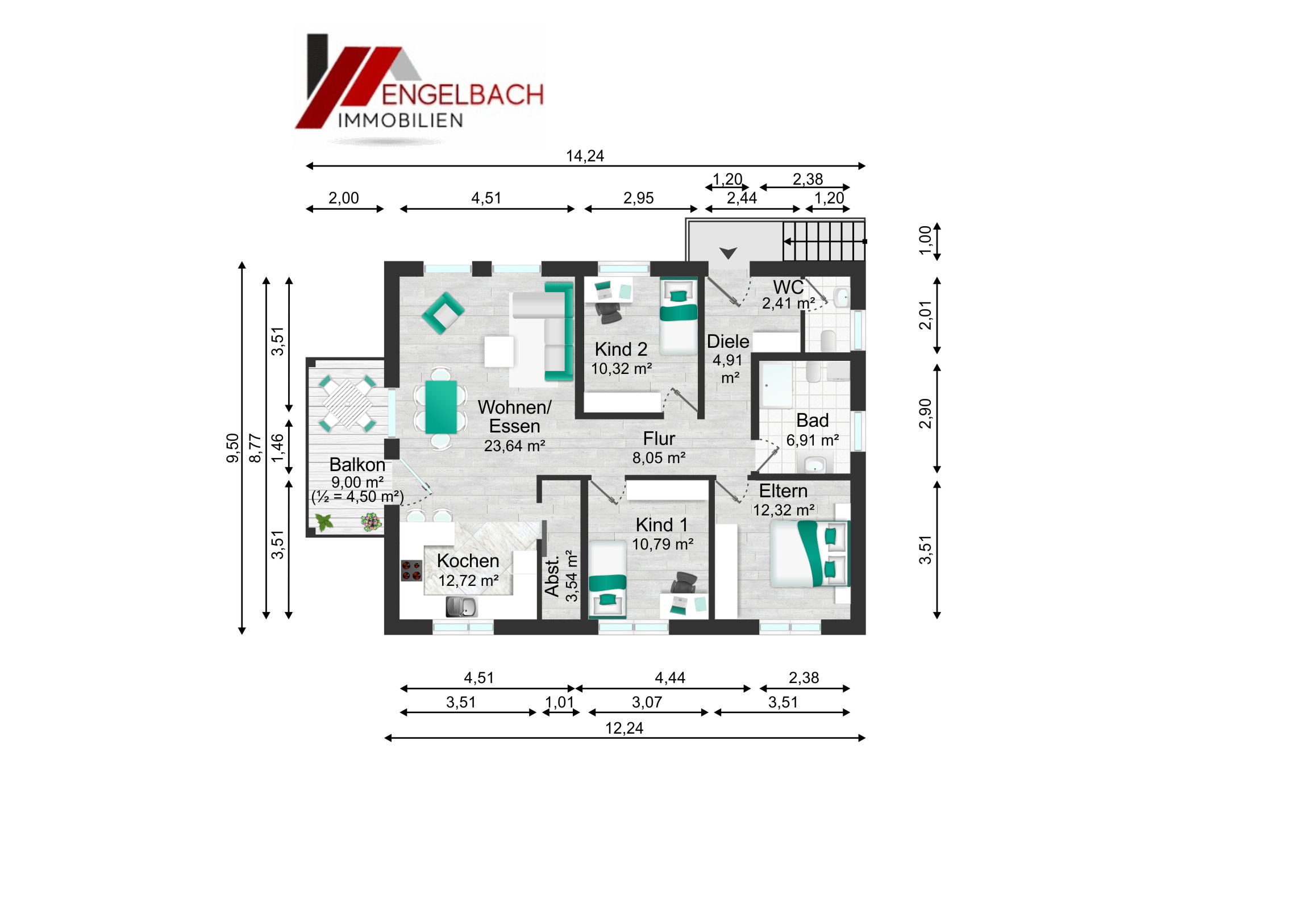 Der Käufer zahlt im Erfolgsfall an die Firma Engelbach Immobilien eine Käufer-Maklerprovision in Höhe von 3,57 % inkl. gesetzlicher MwSt. Die Provision errechnet sich aus dem beurkundeten Kaufpreis.